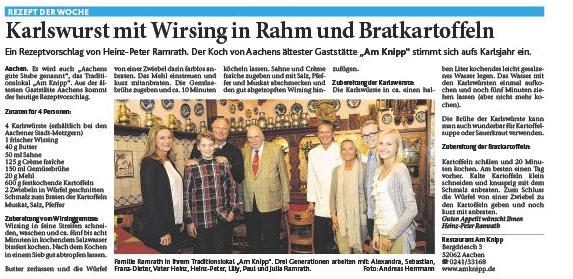 Ein Reichtum erlesender Antiquitäten schmückt jeden Winkel von "Am Knipp". Warum die Aachener dem Wirt Heinz Ramrath den Spitznamen "Der Zinnkönig von Aachen" verliehen haben, erklärt sich bei dem Anblick der zahllosen kupfernen Wein- und Bierkannen an der Decke und Wänden von selbst. An ihnen erfreuen sich die Aachener Stammgäste ebenso wie die zahlreichen Besucher der Kaiserstadt.